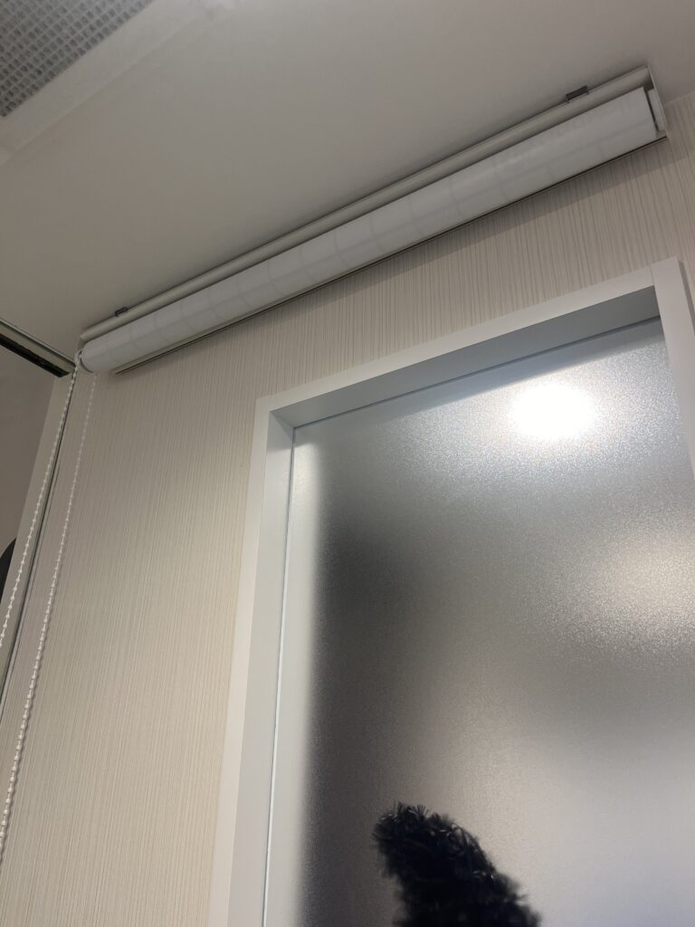 今回の製品は 縦 230×横 80[cm]のロールアップタイプ天井付けの左チェーン。
