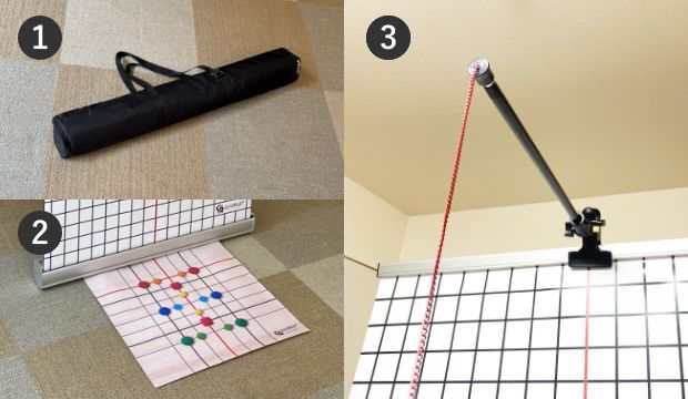 ①スクリーン機材 ②フットポジショナ ③垂直チェーン